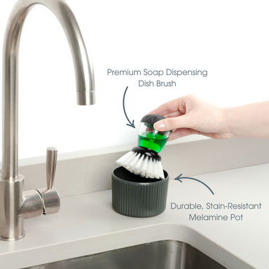 The perfect partners for a tidy sink. This Zeal two-part dish brush and holder set has been designed to fit neatly around any sink, keeping your si...