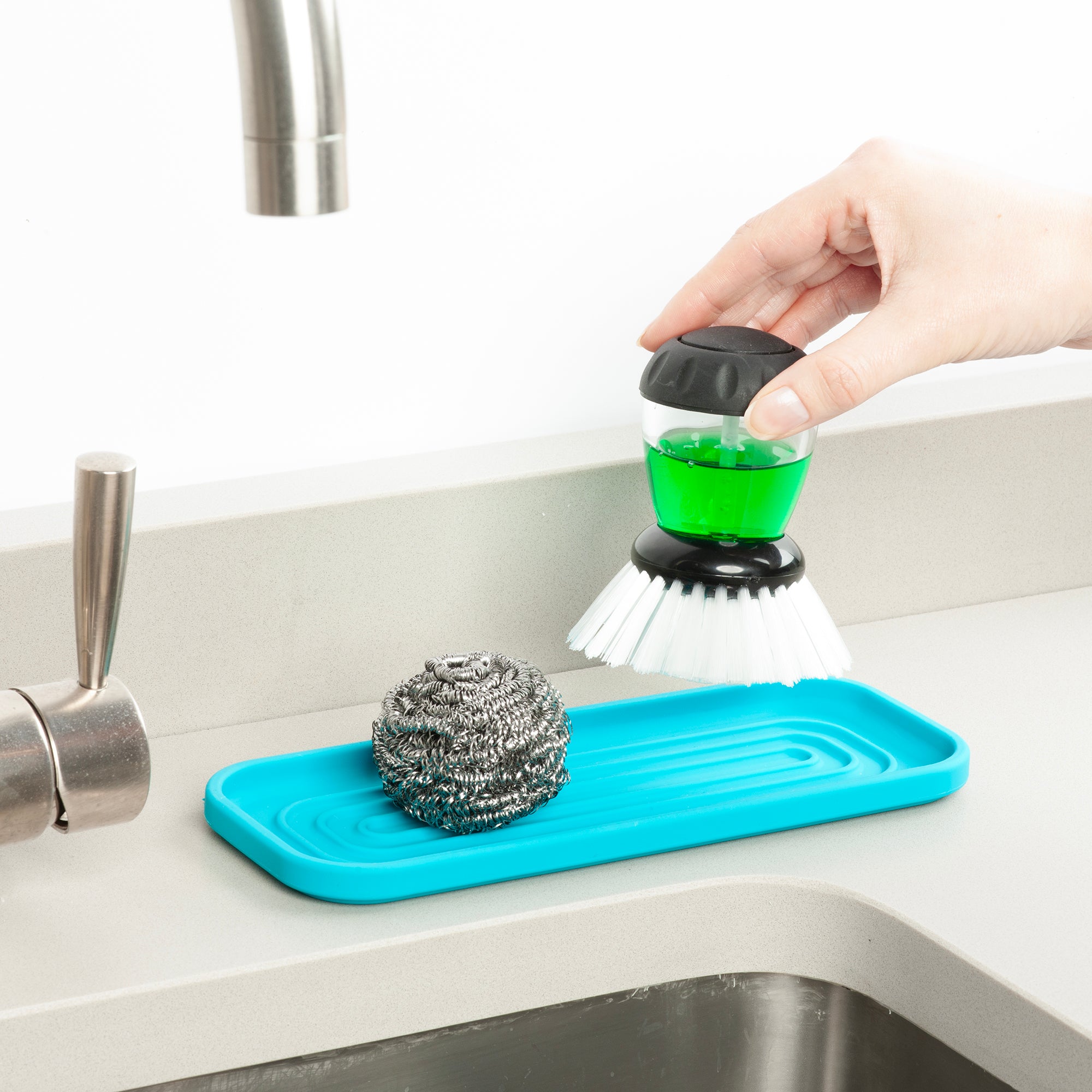 Made from durable, water-resistant silicone, it provides a hygienic and slip-resistant base for storing sponges, cloths, soaps, and other essentials. Its flexible design fits neatly around most sinks, helping to reduce clutter and prevent water messes, while the easy-to-clean surface ensures long-lasting convenience and cleanliness.
